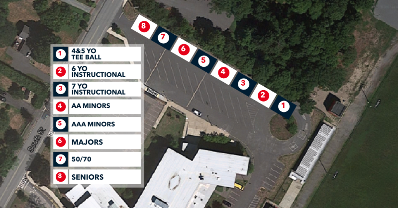 Please do not park at the Vet's Club across from the Cottage St. lot.3:30pm—Assemble in the Williams School parking lot and find your team. Please see the map below for the order we’d like the age groups to line up in. Youngest leagues up front and oldest leagues to the back.